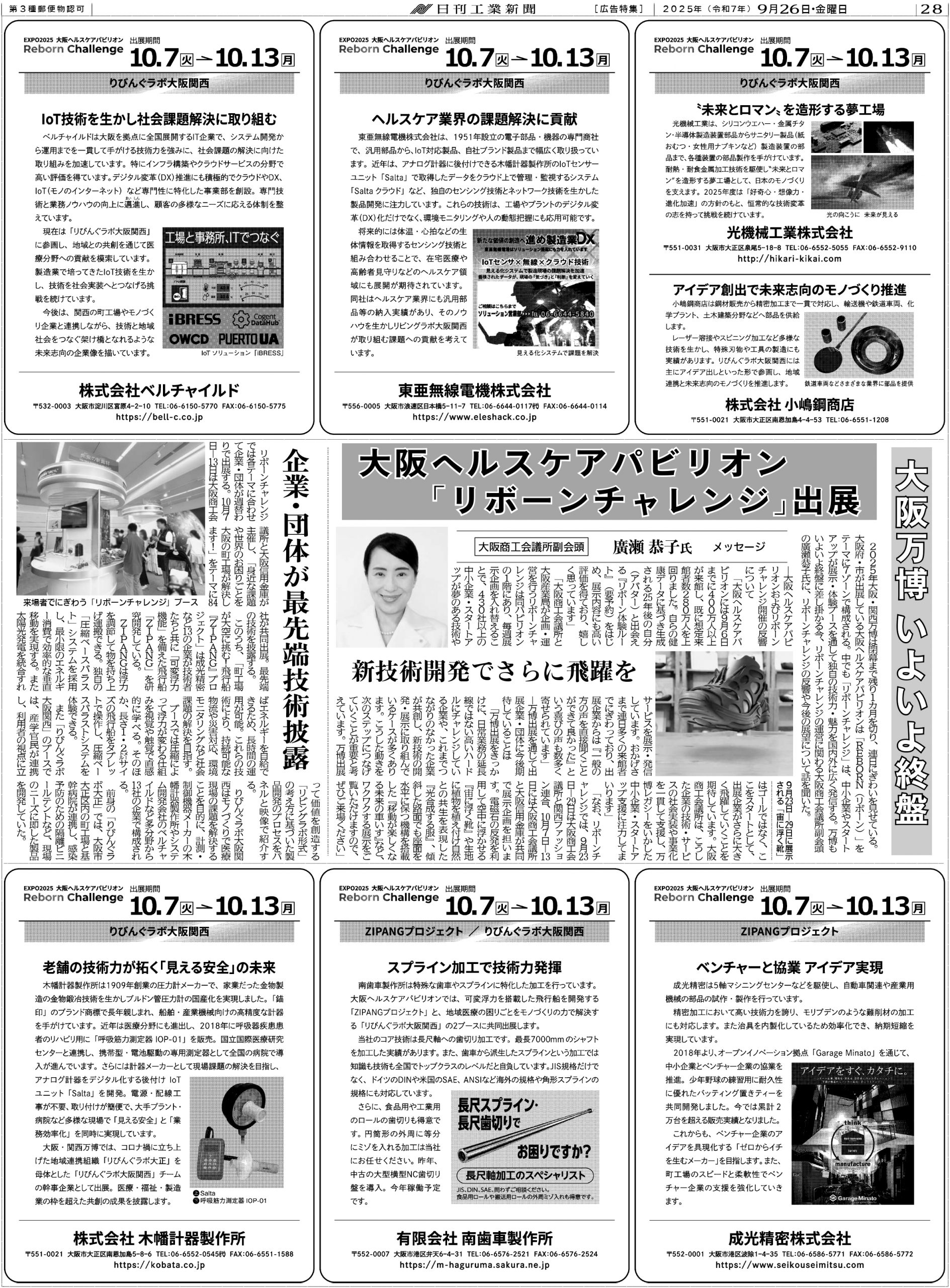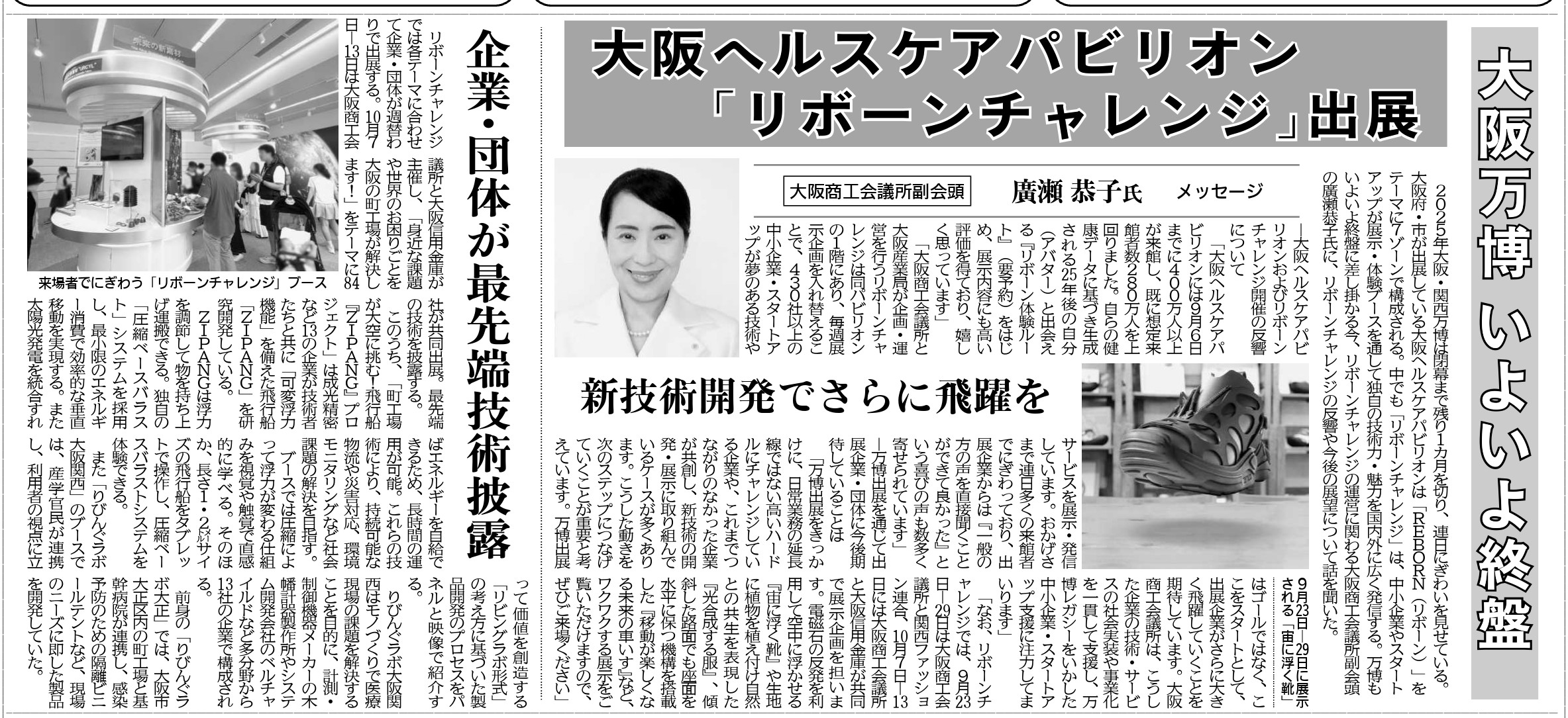 このたび、10月7日~10月13日の 大阪・関西万博2025「リボーンチャレンジ」への出展 について、日刊工業新聞で弊社をご紹介いただきました。